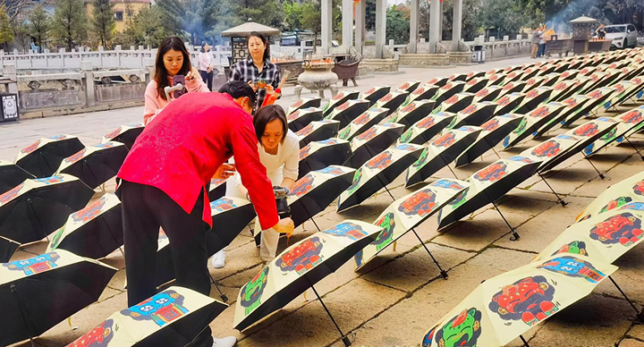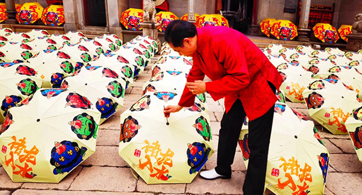 祖庙对深夜福利网址生产的雨伞质量非常认可,2024年再次合作,定制新的款式折叠伞。