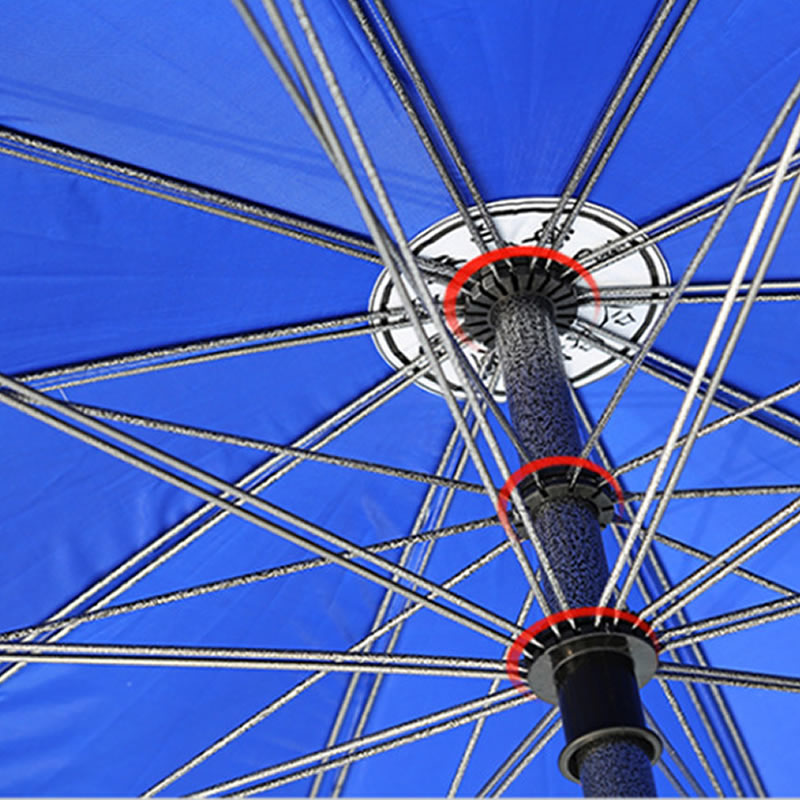 核心的三层伞架双骨结构更是精妙绝伦。三层伞架如同层层守护,外层粗壮伞骨强力支撑伞面边缘,抵御大风拉扯;中层伞骨巧妙分布,分担压力,稳定伞形;内层紧密排列,强化中心支撑。双骨设计则是锦上添花,两根坚韧伞骨并行,相较于单骨大大增强了整体强度。材质多选用高强度铝合金或玻璃纤维,质轻却坚如磐石,既方便移动布置,又能在狂风呼啸时稳立不倒。